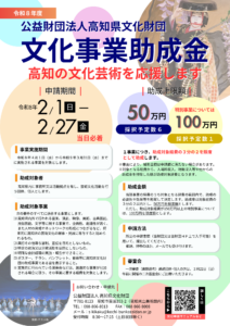 「令和8年度(公財)高知県文化財団文化事業助成金」申請団体募集について